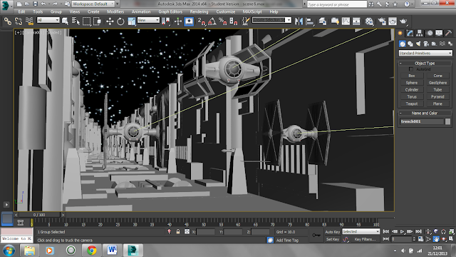 Within my 3rd scene I also used an omni light because there was no need for special light effects again, this though I have used a target camera that track the middle x-wing and travels down a spline as if it was traveling with the x-wings.